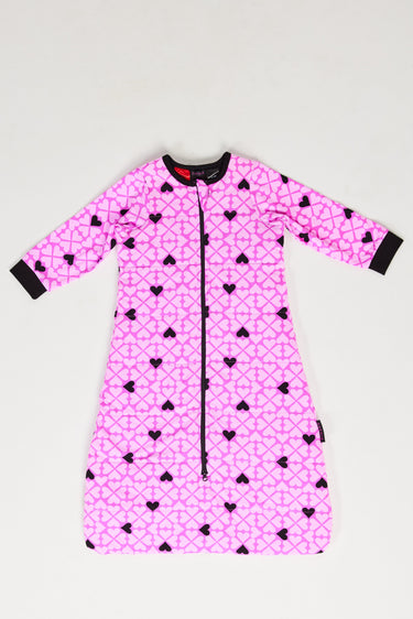 Wrap your little one in comfort and love with our Heartland Baby Sleep Bag. Designed in our signature pink-on-pink heart print with black heart accents, this cosy essential is made to keep your bub snug all night long. Crafted from soft, breathable cotton with a gentle stretch, it features a practical zip opening for easy changes and a roomy fit for wriggly sleepers. The sweetest way to keep them warm, safe, and oh-so-comfy.